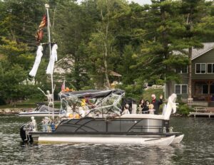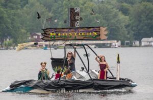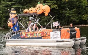 1st Place Entry in 2024 Lovell Lake Boat Parade from the Conway family with “Hocus Pocus.”