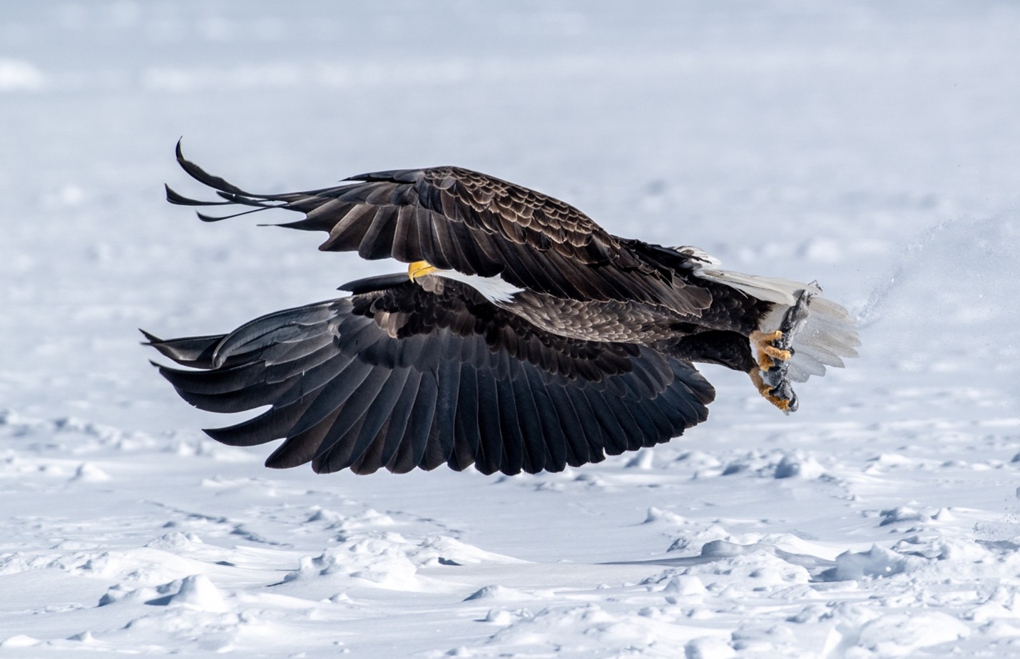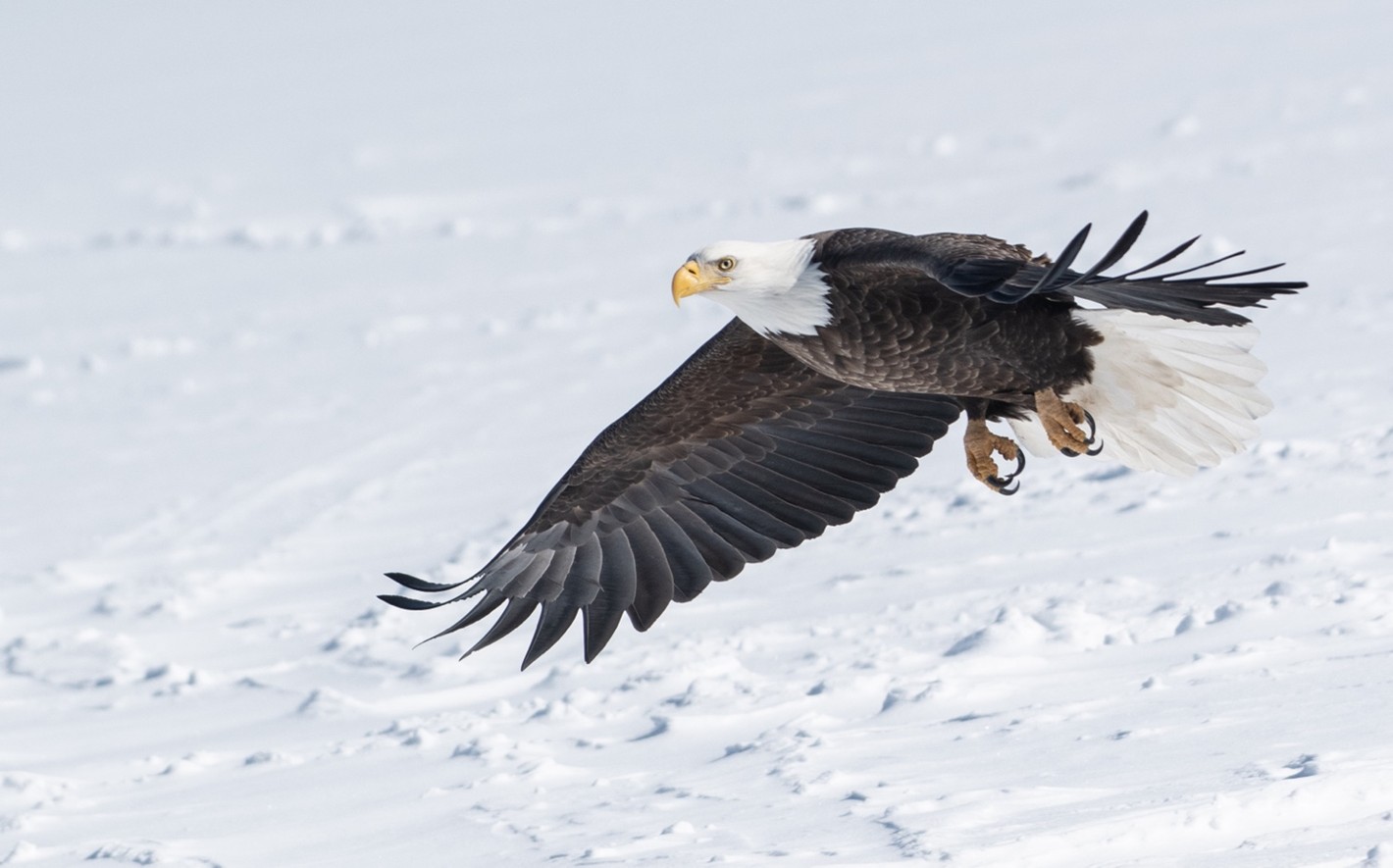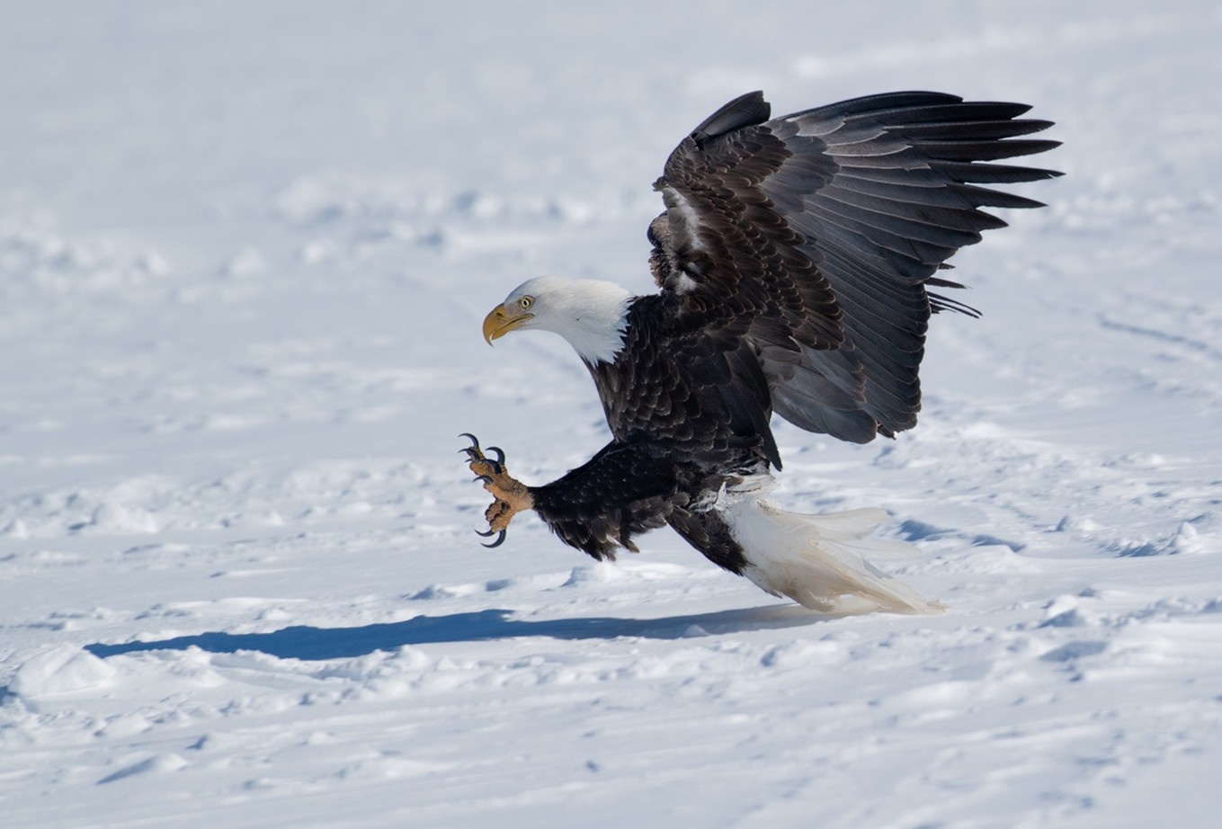 The ice fishermen were out over the weekend. I use the masculine “fishermen” not to be misogynistic, but simply because they were all males. One of the men left a fish on the ice for the eagles. It wasn’t long before the gift drew attention. The eagle spied the fish…